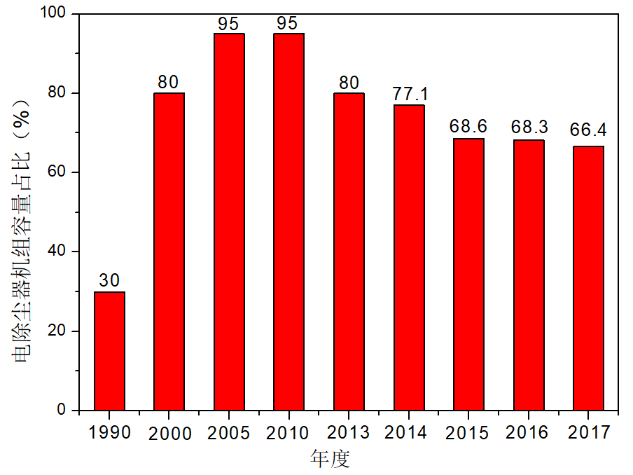 图1 1990年-2017年煤电电除尘器市场占有率