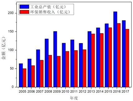 如图2所示,电除尘行业集中度较高,13家电除尘主要骨干企业2005年至2017年的工业总产值及环保销售收入占行业总产值的60%以上,绝大部分电除尘产品销往燃煤电厂。2014年超低排放市场启动后,销售收入持续增长,2016年达到顶峰,2017年起出现下降。