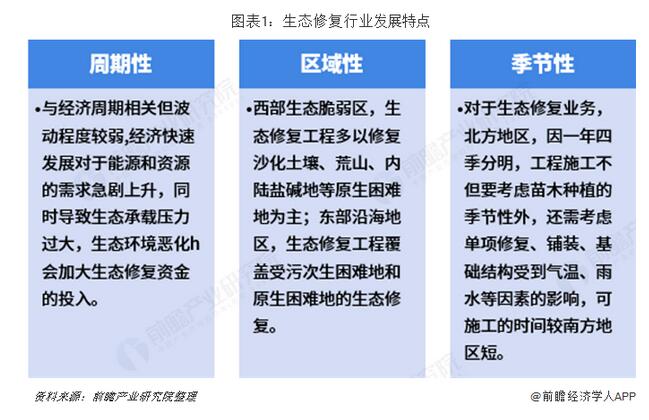 2019年3月,人大举行记者会,生态环境部负责人称要打好污染防治攻坚战。近年来,由于我国城市化进程的加快和房地产的迅速发展,地产景观和园林绿化建设也给生态修复助力不少。生态修复行业是环境保护的最后一关,重要性不言而喻。在发展过程中,呈现周期性、区域性和季节性特点。随着我国对环保产业投资加大,企业都较为活跃,生态PPP项目不断增加且落地率高。整体来看,生态修复行业前景较好。