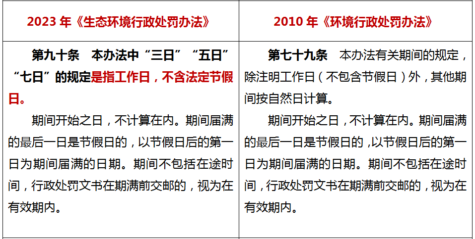 因此,新《处罚办法》第90条明确规定,本办法中“三日”“五日”“七日”的规定是指工作日,不含法定节假日。