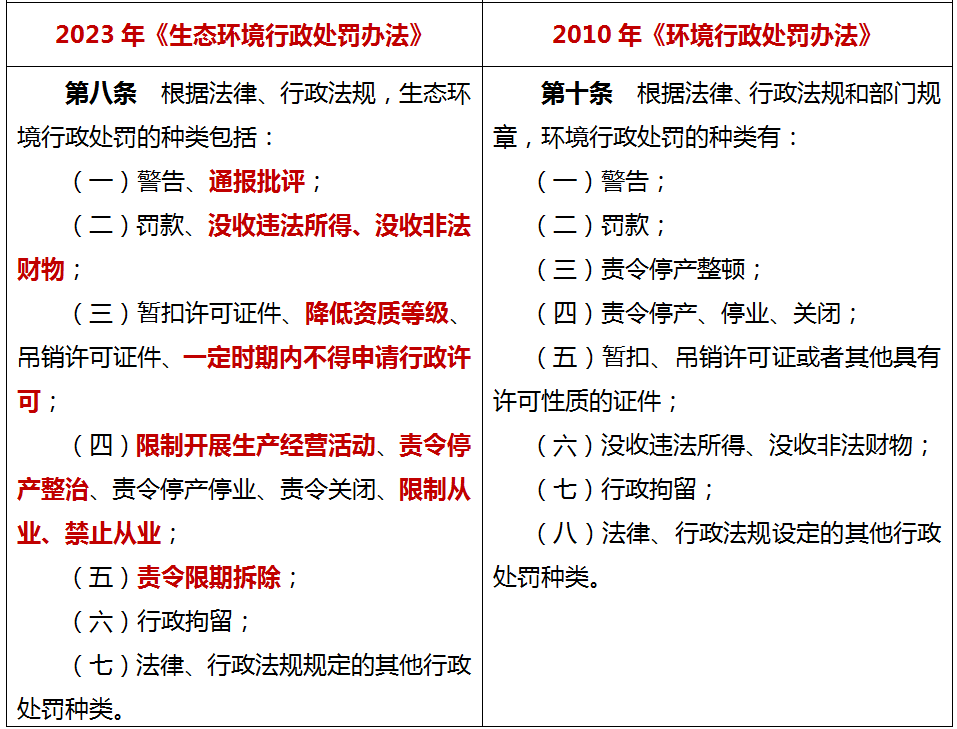 补充生态环境处罚的种类
