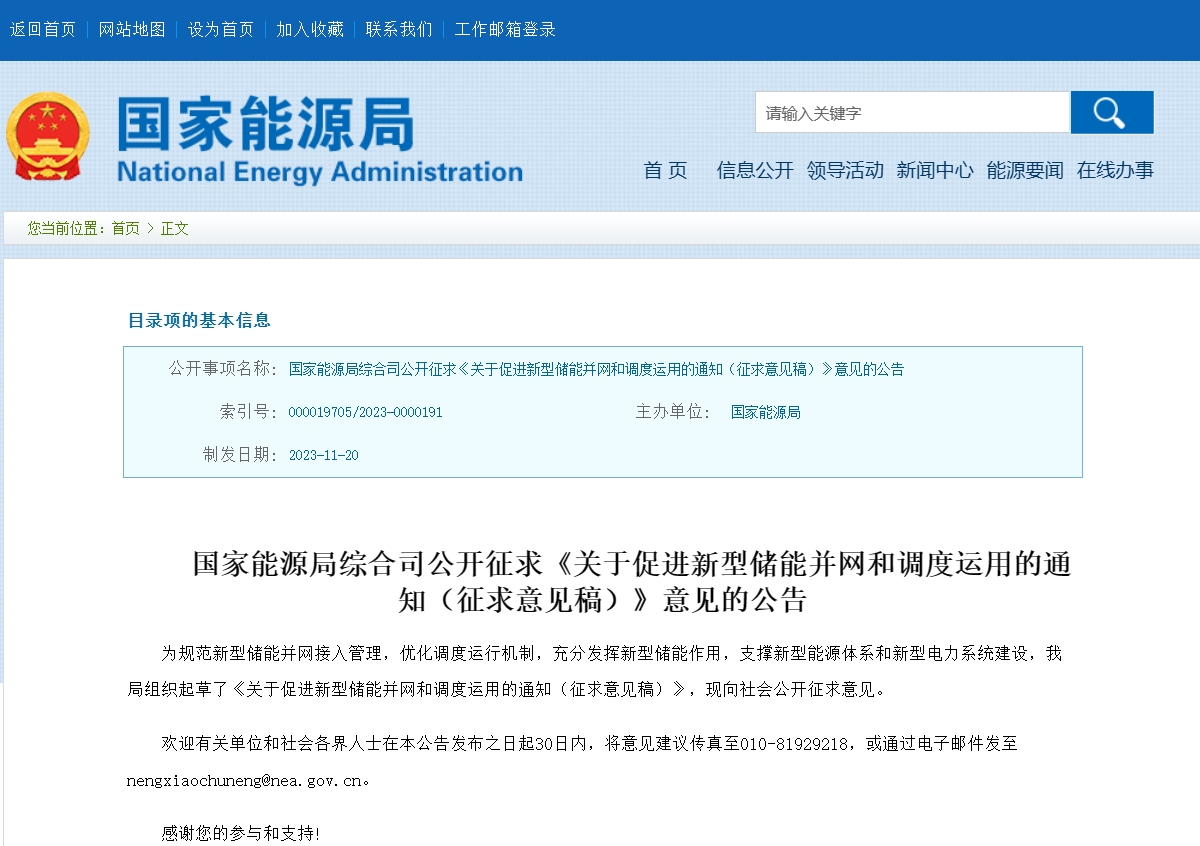 转载:国家能源局综合司公开征求《关于促进新型储能并网和调度运用的通知(征求意见稿)》意见的公告