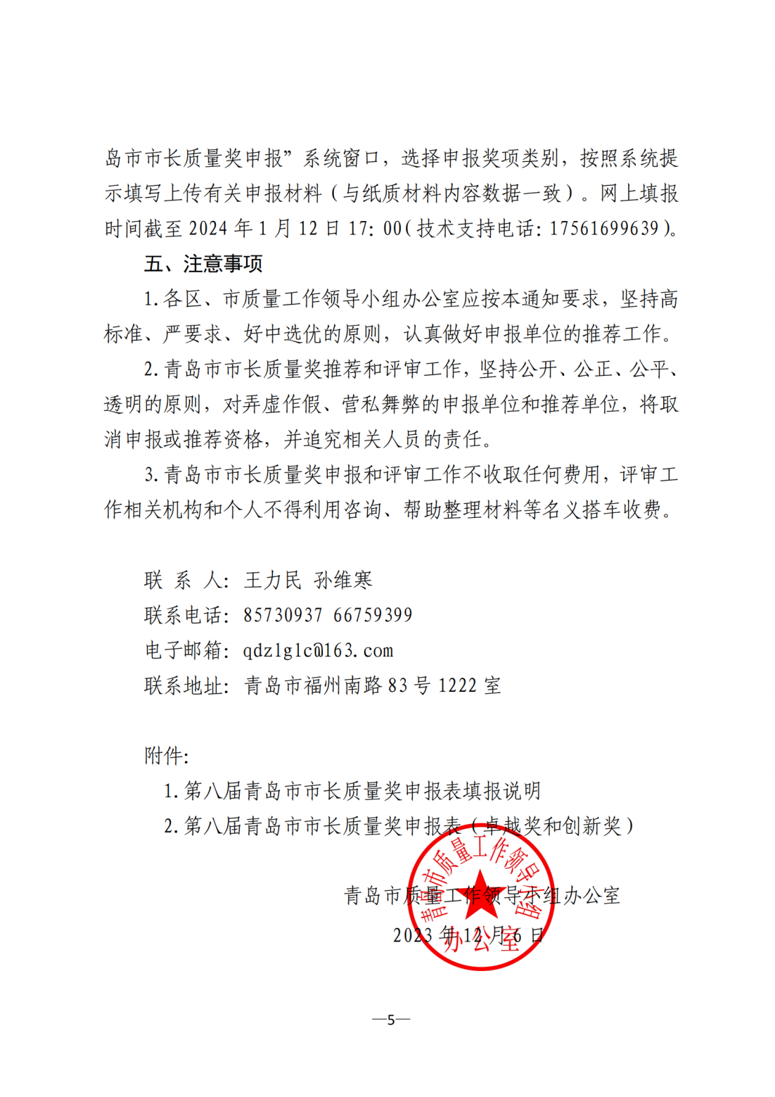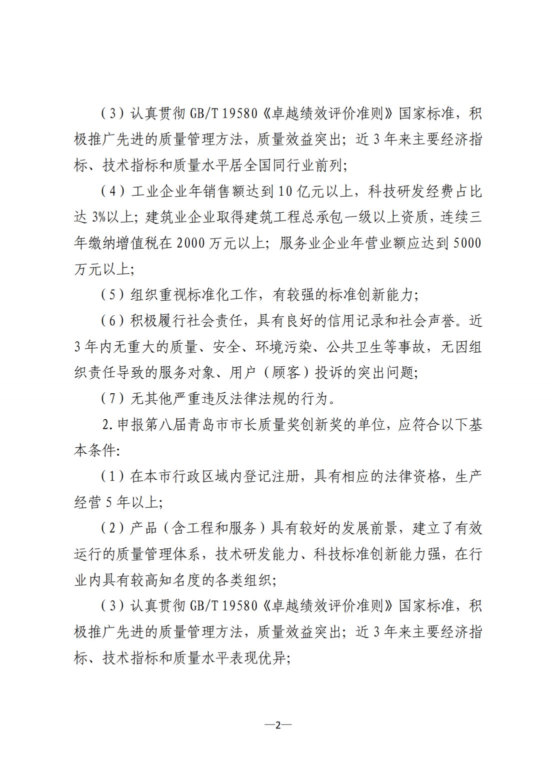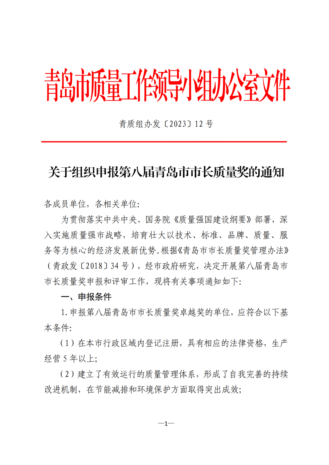 转载:关于组织申报第八届青岛市市长质量奖的通知