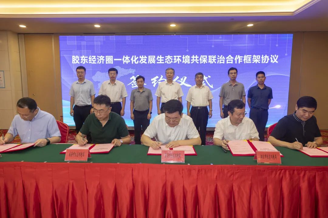 9月12日上午,胶东经济圈一体化发展生态环境共保联治联席会议在青岛市崂山区远洋大酒店召开,共同谋划胶东五市“十四五”期间生态环境保护一体化发展蓝图,共商一体化发展生态环境共保联治大计,共同推进胶东五市更好更快发展。联席会议上,青岛、烟台、威海、潍坊、日照五市生态环境局共同签署《胶东经济圈一体化发展生态环境共保联治合作框架协议》,并审议通过了《胶东经济圈一体化发展生态环境共保联治联席会议制度》。省生态环境厅党组书记、厅长宋继宝出席会议并讲话,青岛市副市长朱培吉致辞。省生态环境厅党组成员、副厅长崔凤友,省生态环境保护督察专员罗辉分别讲话并提出要求。省生态环境保护督察办公室、省生态环境厅区域生态环境保护督察第二办公室、第四办公室负责同志以及五市生态环境局相关负责同志参加会议。青岛市生态环境局党组书记、局长杨钊贤主持会议。